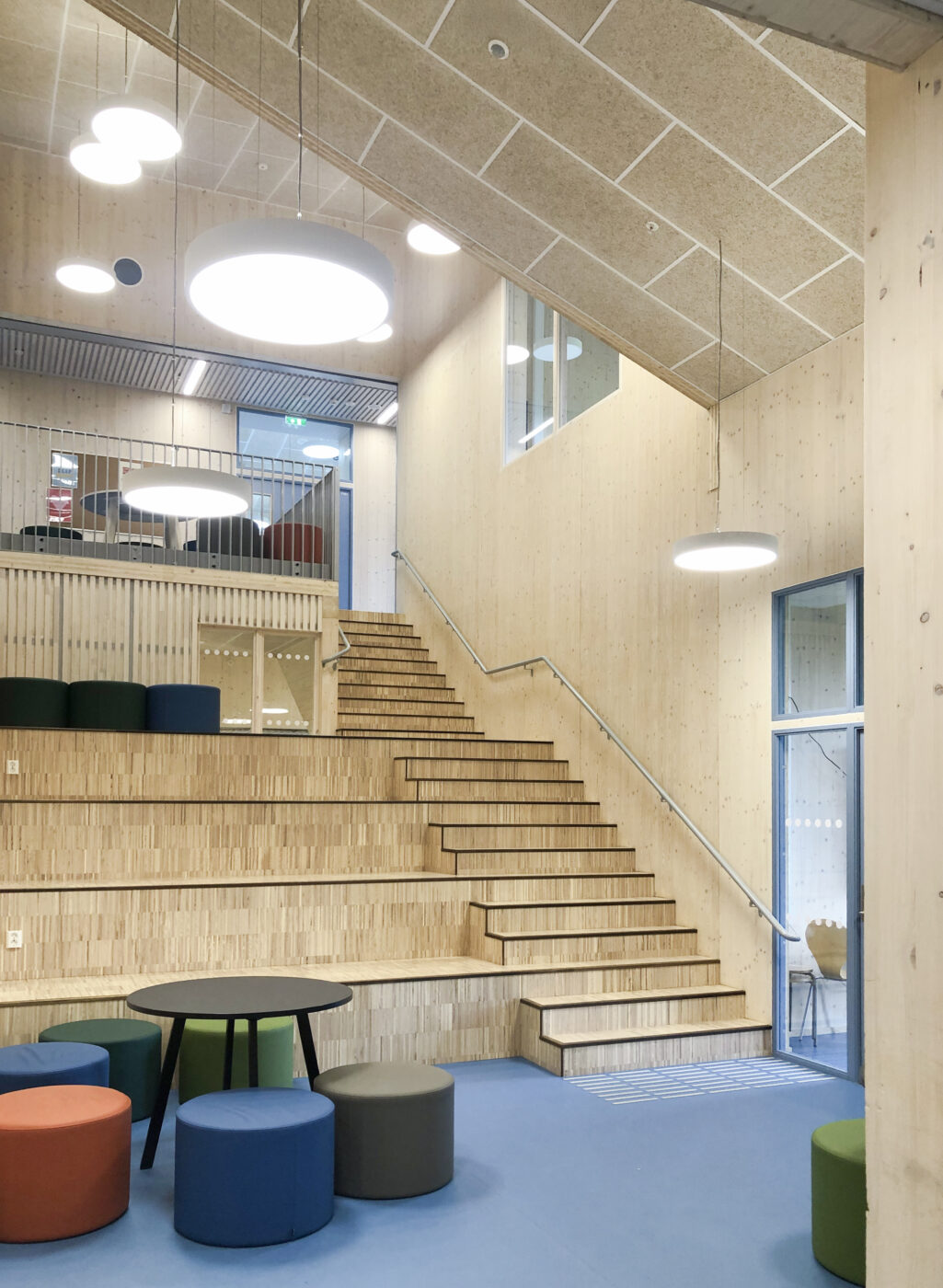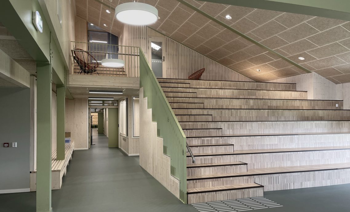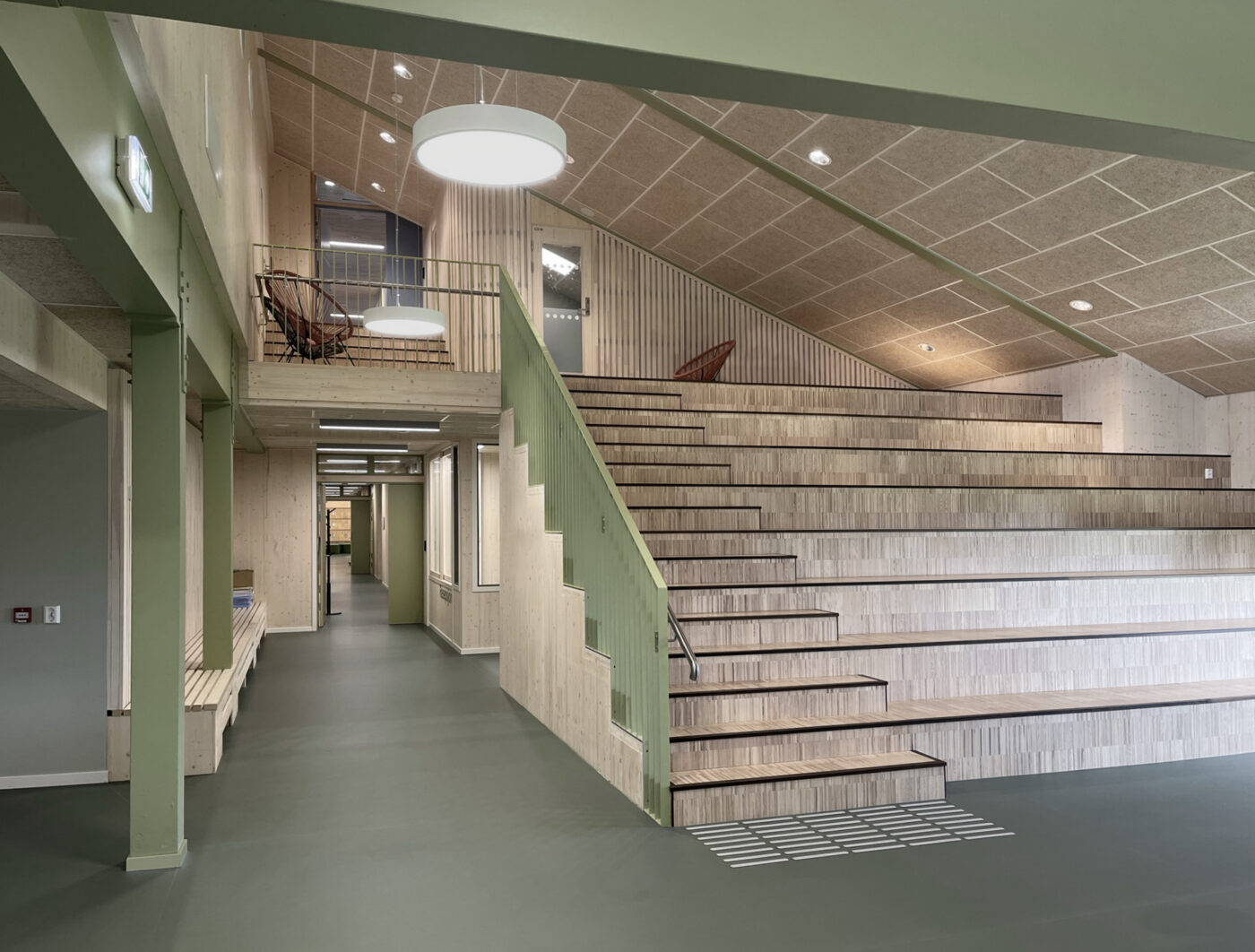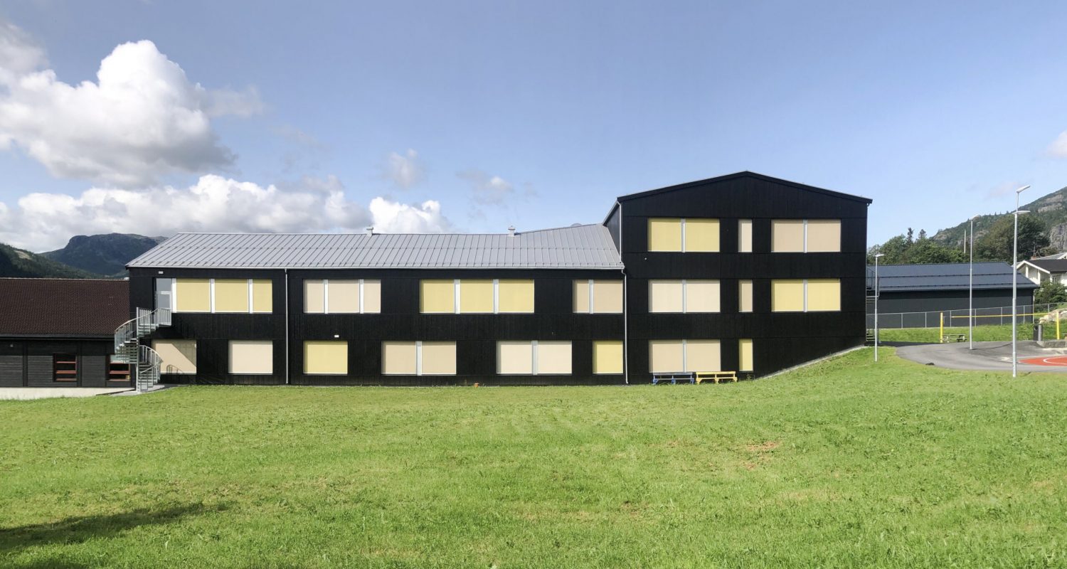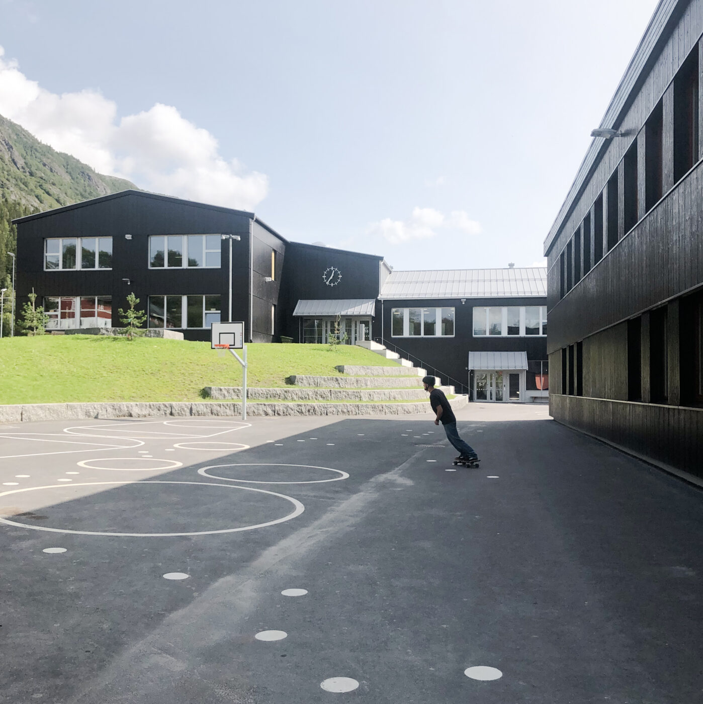 1st prize winner of the invited competition for the primary and middle school in Hemsedal, Norway. Rebuilding of existing school and a new extension in cross laminated wood.