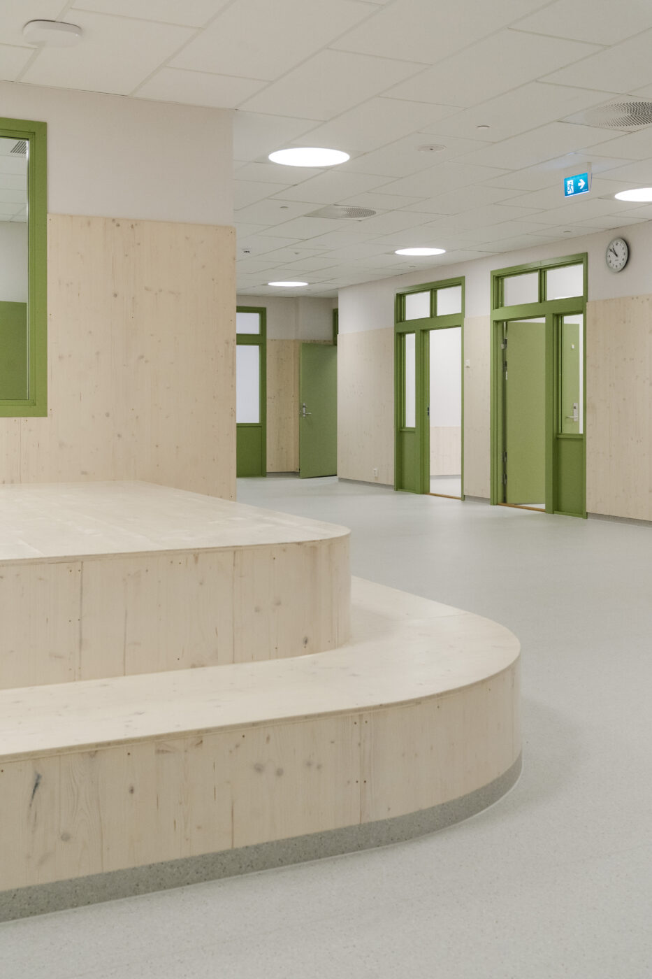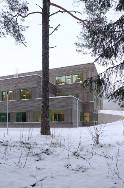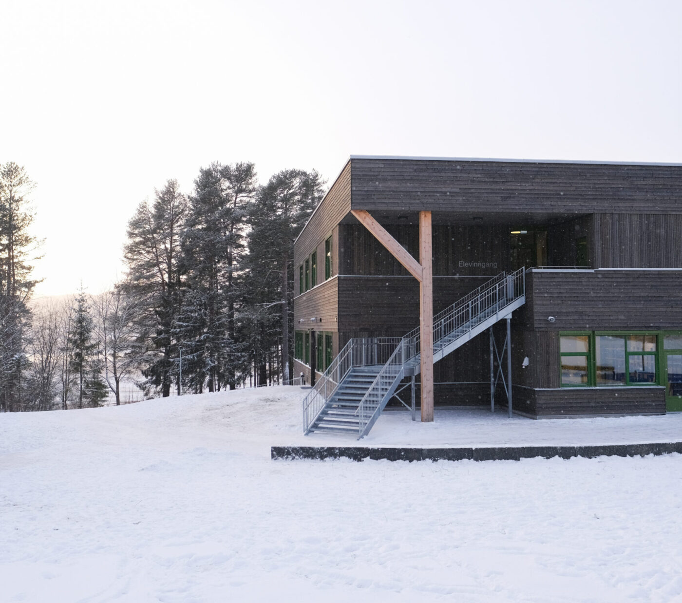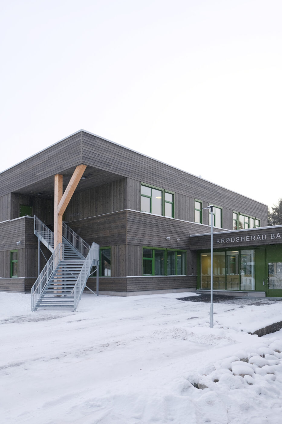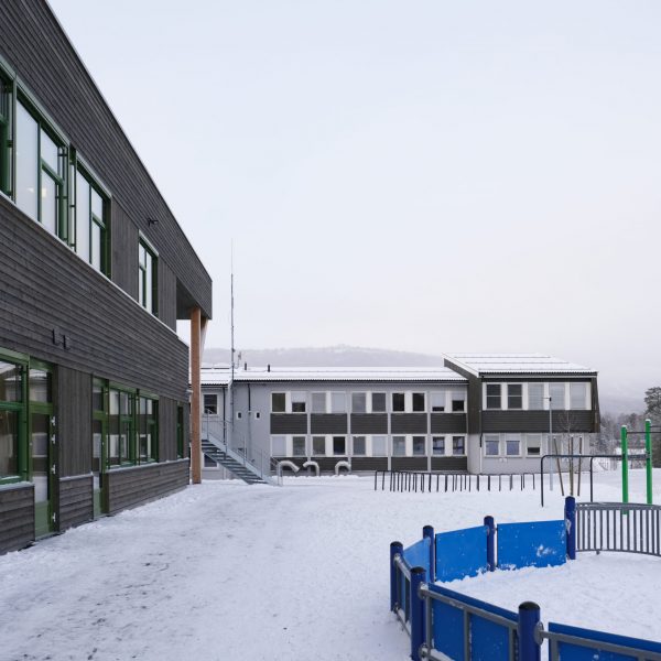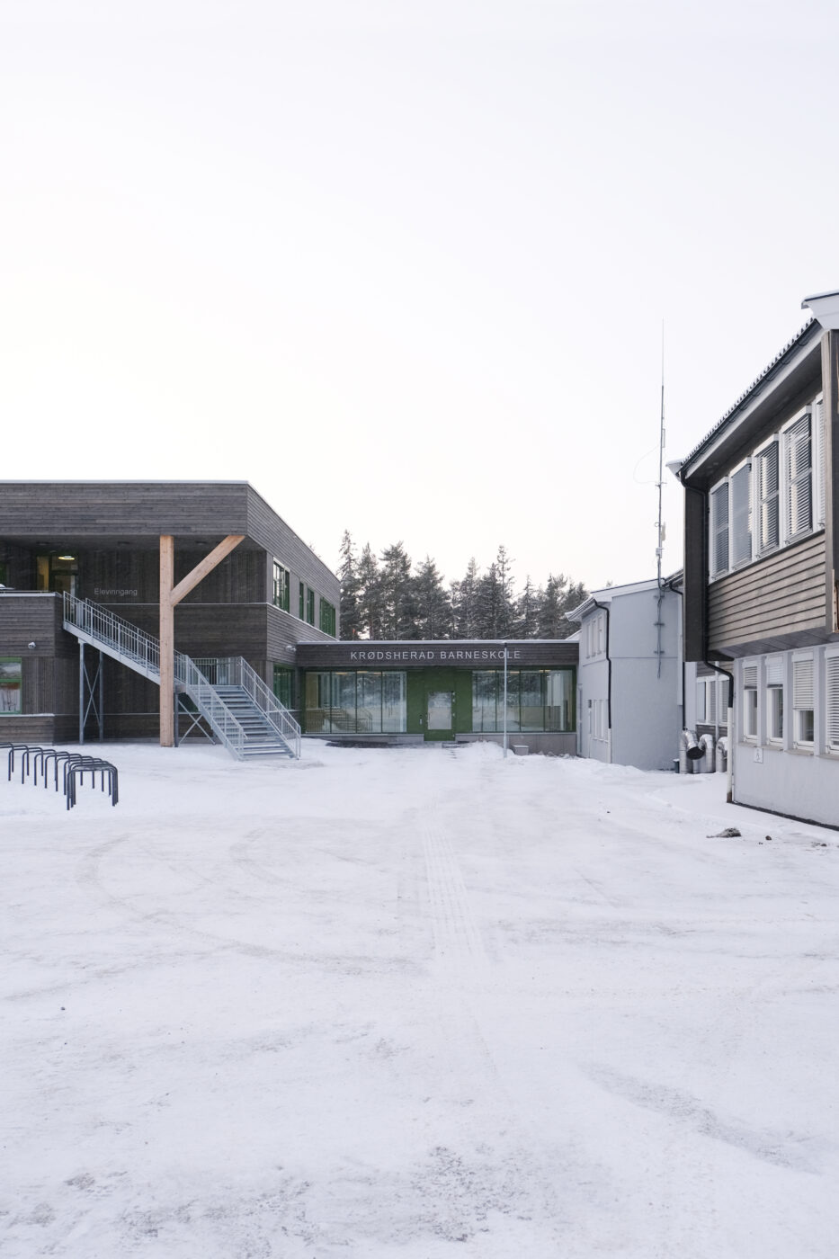 Located in Noresund, a small town at the foot of the Norefjell mountain range, Krødsherad Primary School opened in January 2026. The new school forms an extension to a listed 1960's building that houses municipal offices, swimming facilities, and a former sports hall that has been transformed into a cultural venue, making the complex an important hub for the local community.